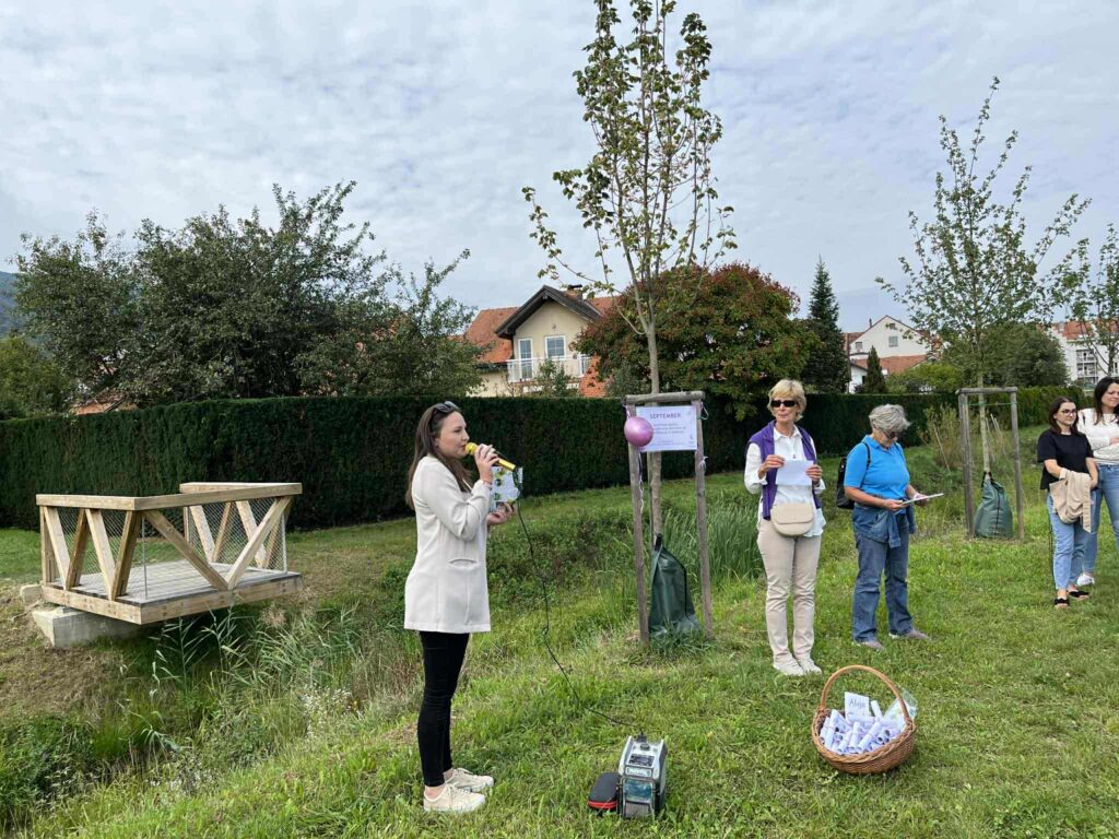 Various awareness-raising and community activities have also started to take place along the Pekrski Creek. During September and October, awareness campaigns on dementia, Alzheimer’s disease, and breast cancer were held, with informative signs attached to trees, encouraging visitors to reflect on health and care for their loved ones.