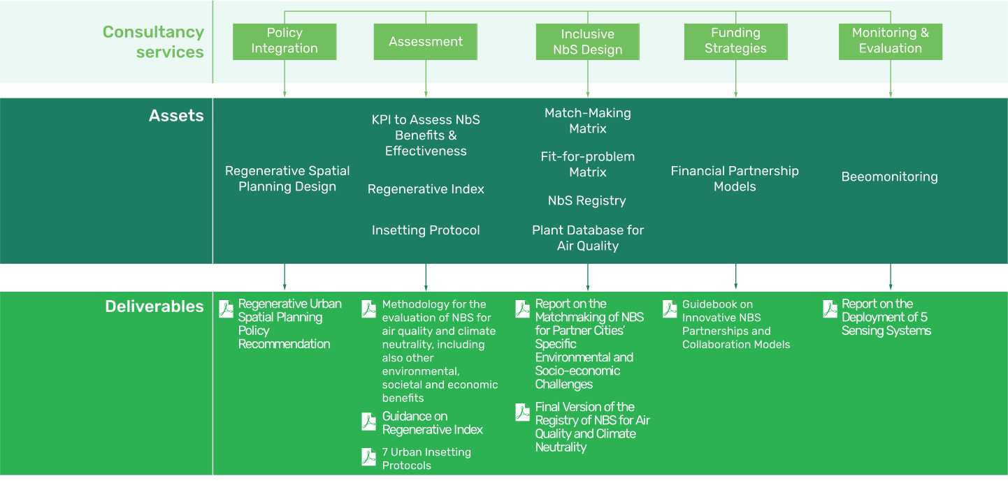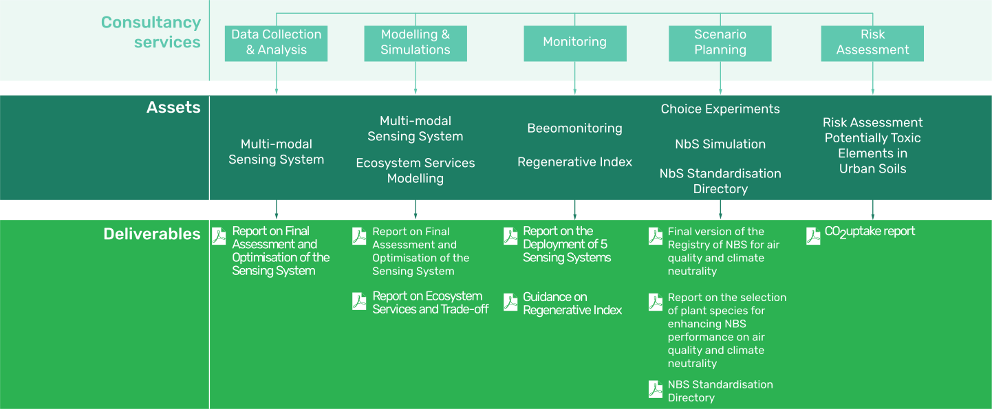 Our Consultancy & Advisory Services forms the core of UPSUGE’s Lighthouse. It addresses the increasing demand for expert guidance in implementing and scaling NbS for air quality, nature restoration, and climate neutrality. It supports cities in navigating complex policy landscapes, including frameworks like the Urban Nature Plans (UNP) and the Nature Restoration Regulation. Now embedded into the UrbanbyNature program our experts provide tailored assistance across the planning, execution, and evaluation phases, offering hands-on support or even delivering custom outputs. Organised into three service categories—co-design & participatory monitoring, data analysis & modelling, and urban regeneration—the consultancy offers strategic, data-informed, and inclusive guidance to ensure NbS initiatives are effective, aligned with policy goals, and sustainable over time.